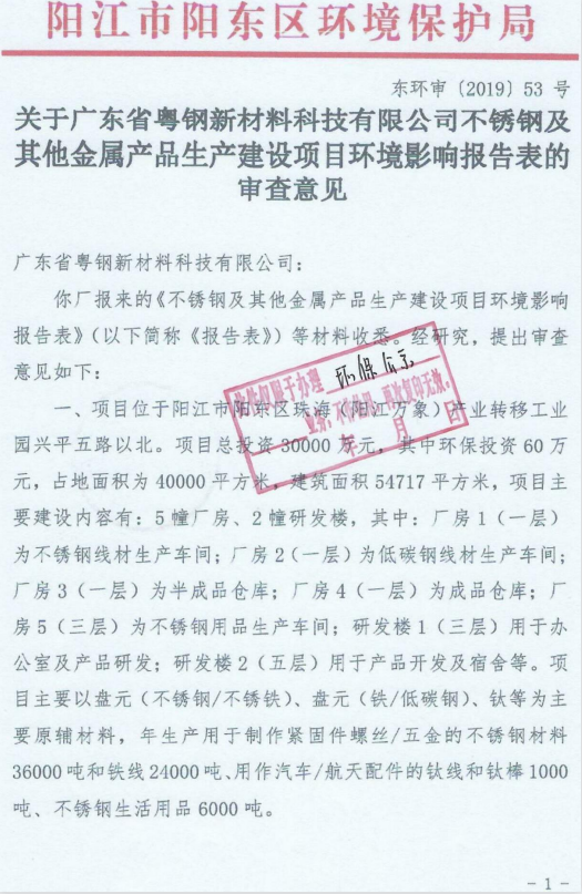 2019年環評批復